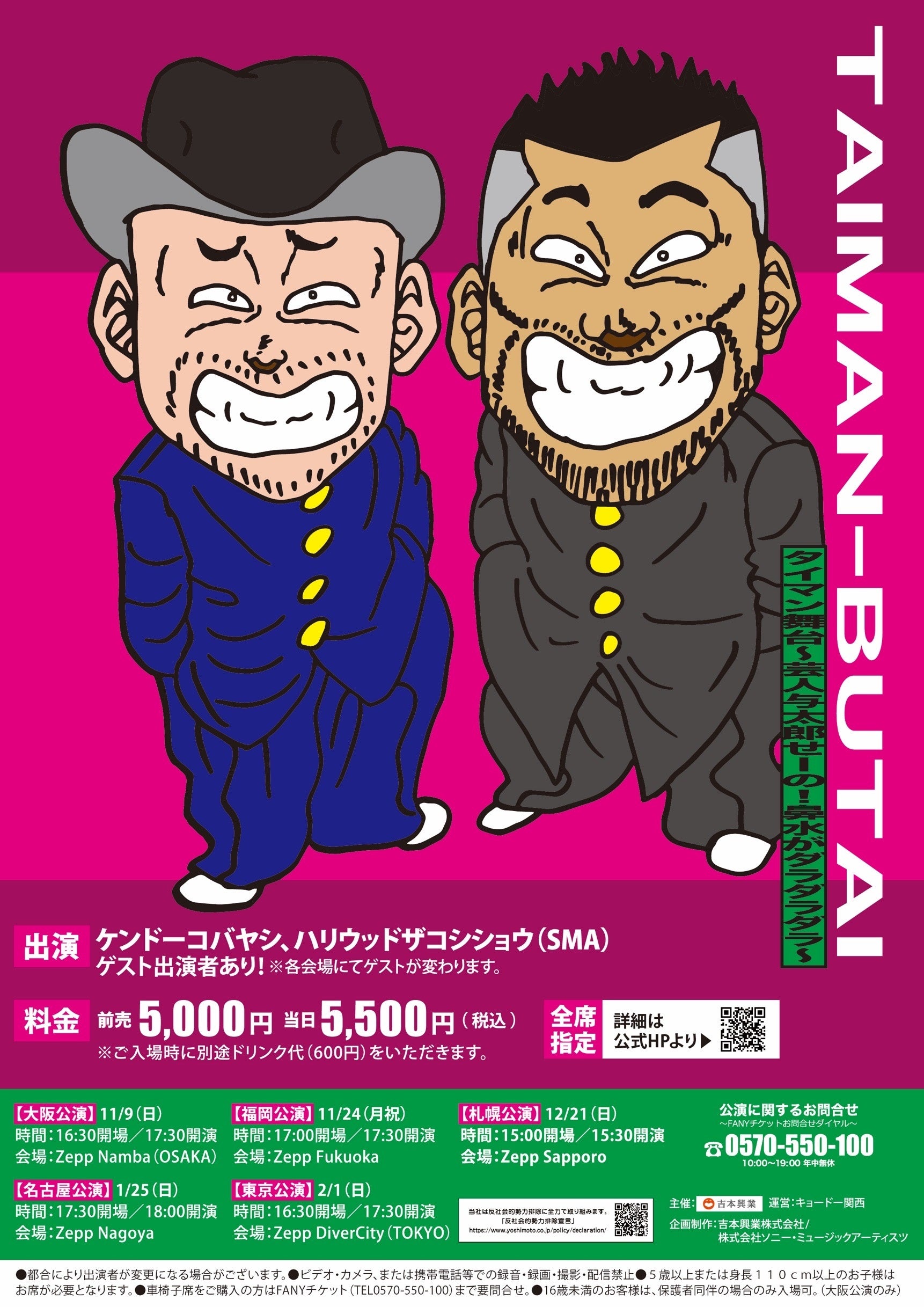 ケンドーコバヤシとハリウッドザコシショウのツーマンライブ『タイマン舞台〜芸人与太郎 せーの!鼻水がダラダラダラ〜』の全国ツアーの開催が決定しました!