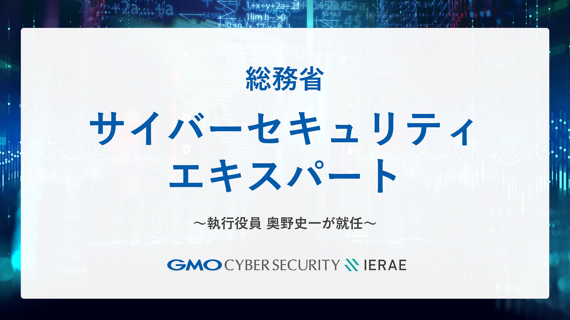 GMOサイバーセキュリティ byイエラエの奥野史一が総務省の「サイバーセキュリティエキスパート」に就任