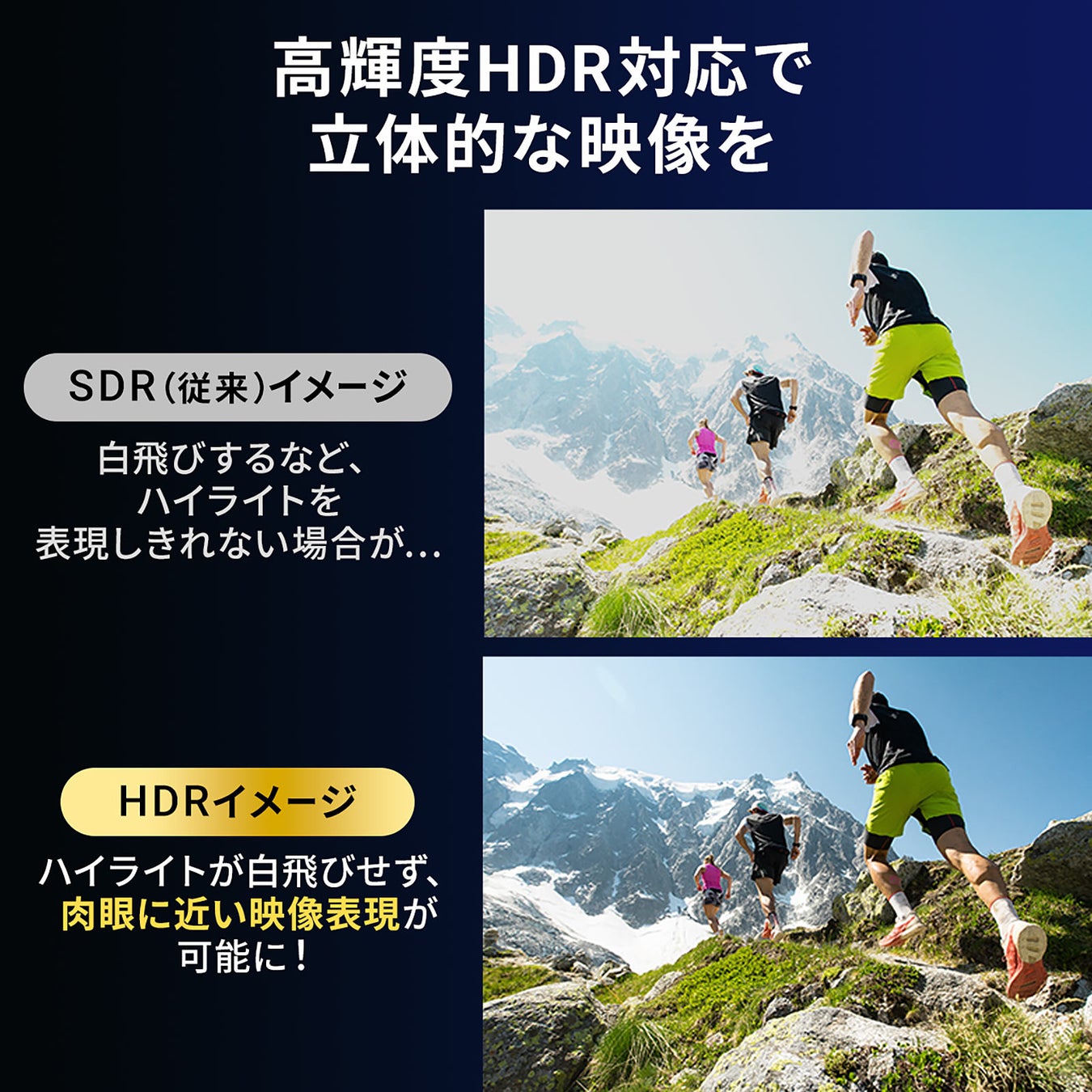 高輝度HDR(ハイダイナミックレンジ)映像に対応しており、HDCP1.4/HDCP2.2/HDCP2.3にも対応しています。