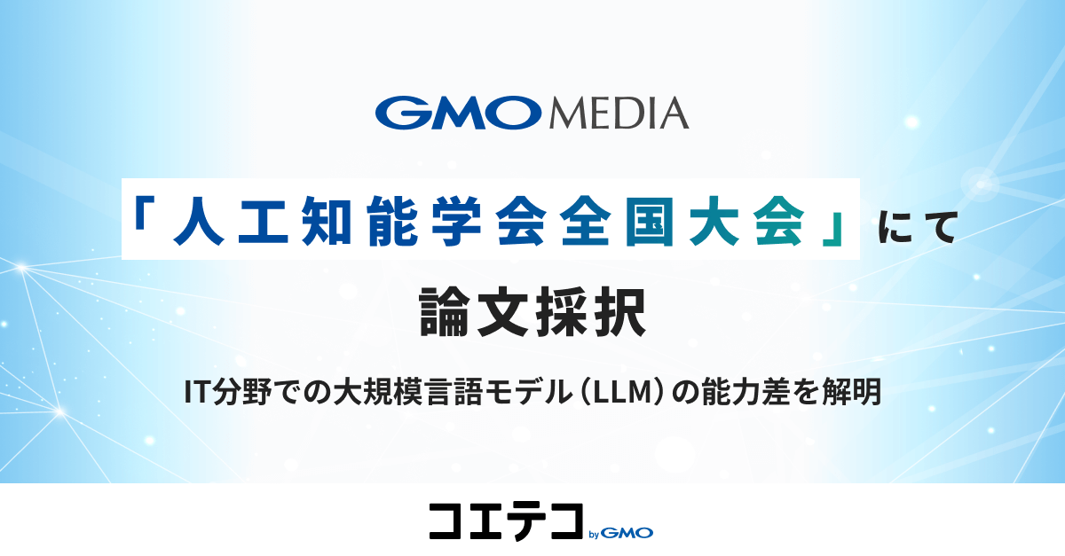 GMOメディア、IT分野でのAI大規模言語モデル(LLM)の能力差を解明した論文が「2024年度 人工知能学会全国大会」にて採択