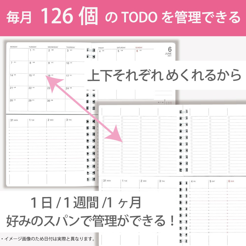 上段後方のページにはTO DOリストがあり1ヶ月分で126個のTO DOを管理することができます。