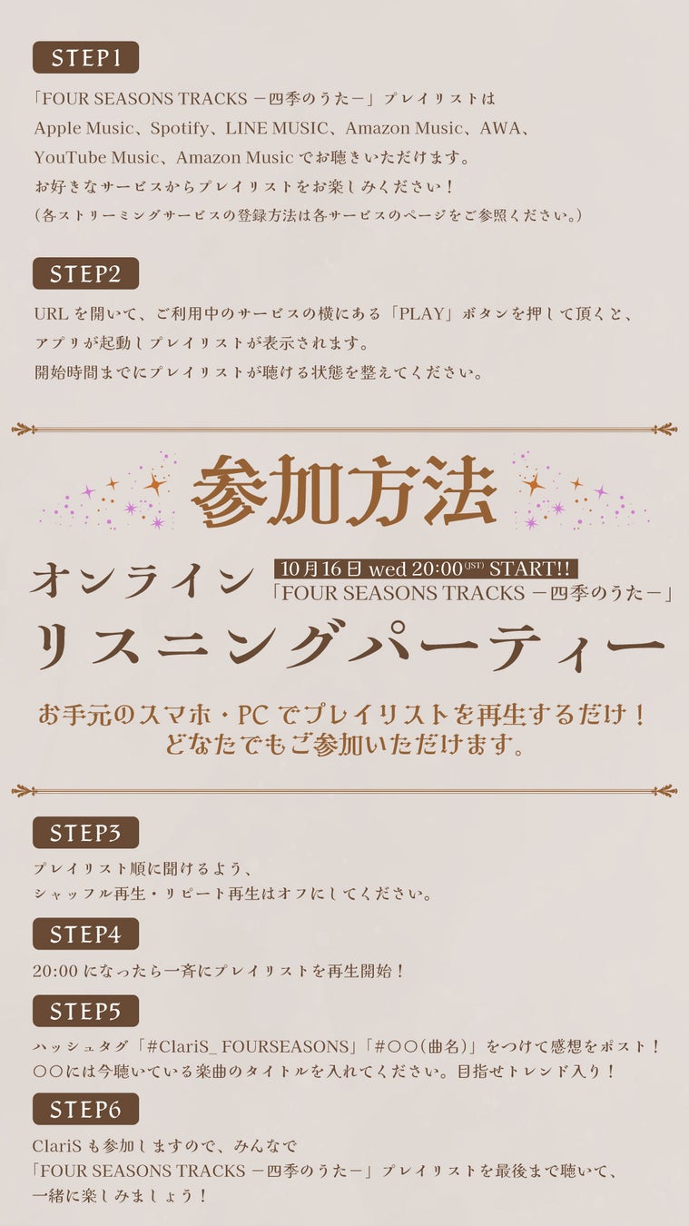 「#ClariS_FOURSEASONS」「#曲名」をつけた感想ツイートお待ちしています!