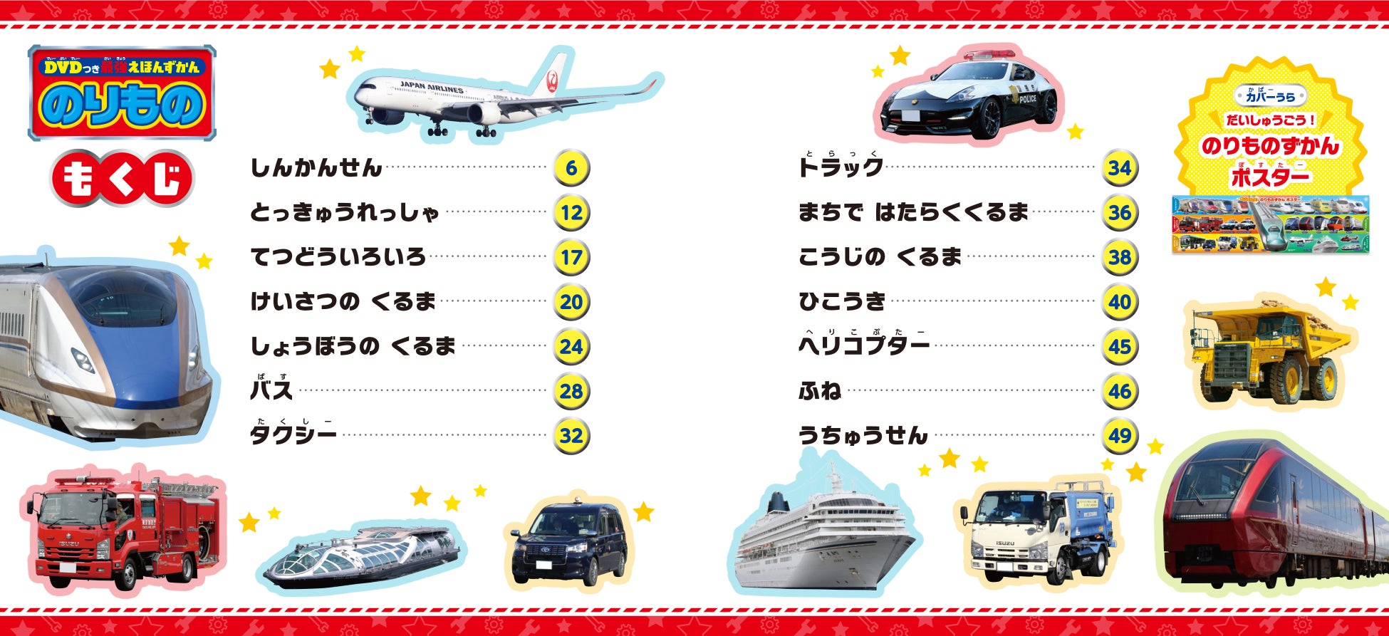 ★他にも、貨物列車やバス、タクシー、トラック、工事車両や飛行機などいろんなのりもの盛りだくさん! DVDと一緒に楽しもう♪