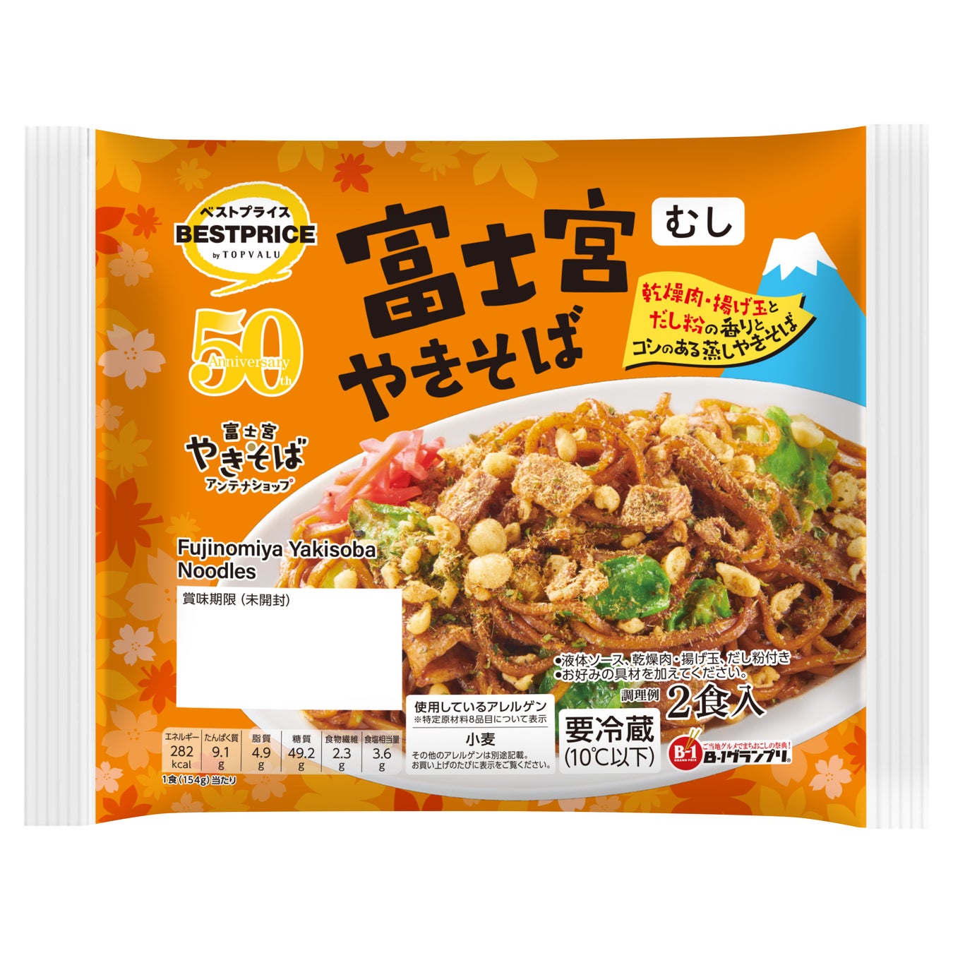 特長:富士宮やきそばアンテナショップ承認。乾燥肉・揚げ玉とだし粉の香り、また準強力粉を使用したコシのある蒸し麺が特長の焼きそばです。