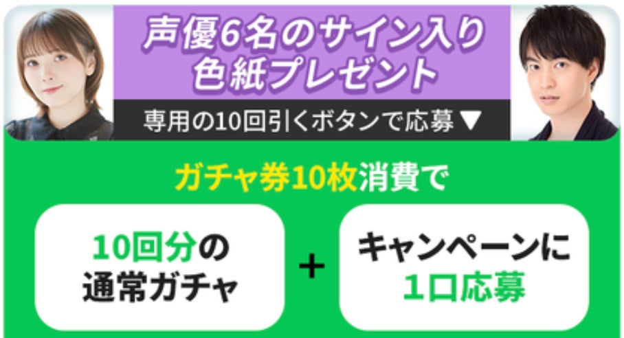 鬼頭明里さん、小林裕介さん、悠木碧さん、下野紘さん、江口拓也さん、日髙のり子さんのサイン色紙が当たるキャンペーンも開催