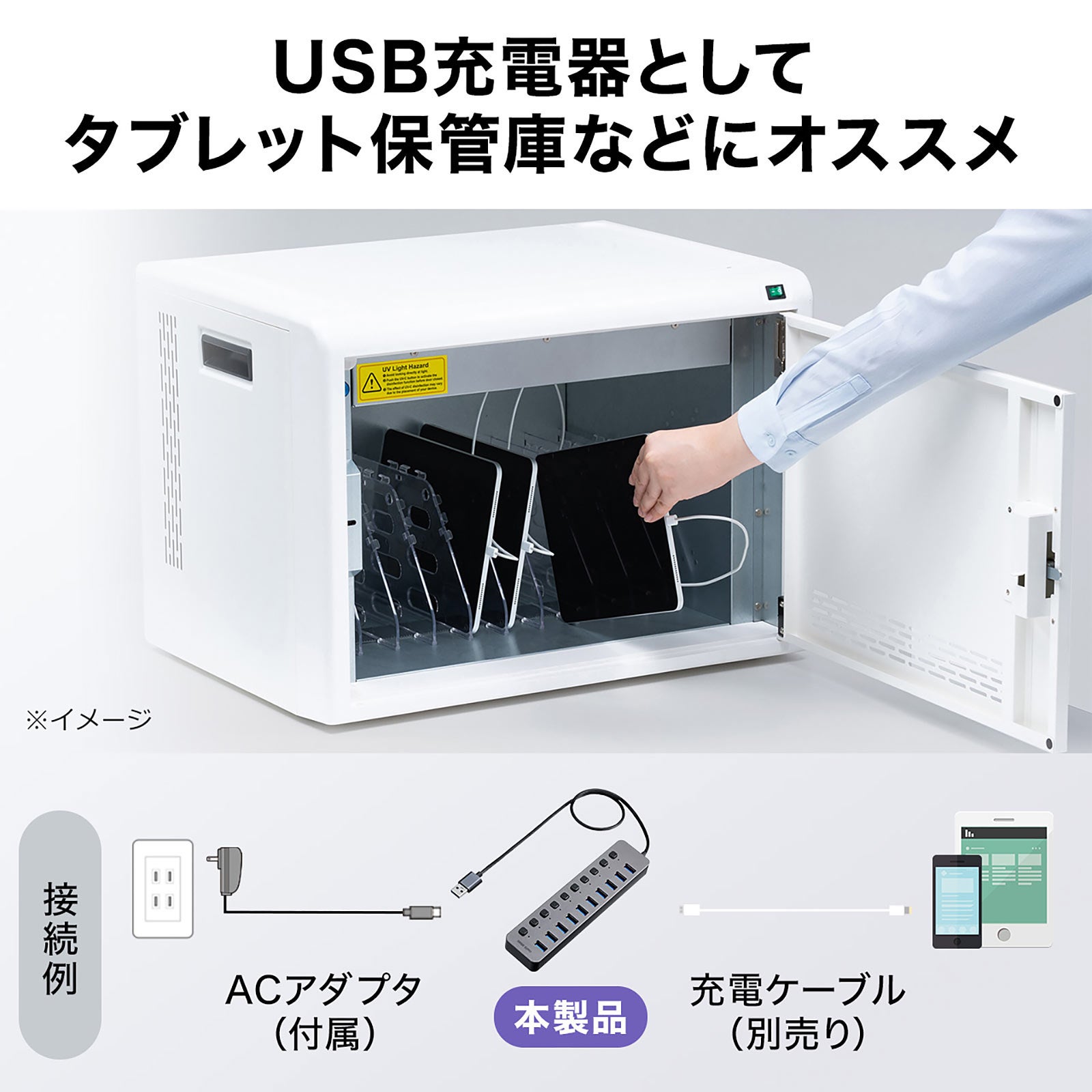 USBハブ 10ポート ACアダプタ付 USB充電器 個別スイッチ付 USB3.2/5Gbps