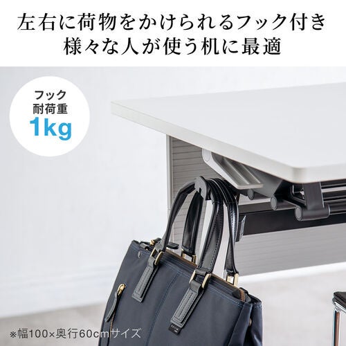 本製品は、幅100cm、奥行60cmのミーティングや研修におすすめの折りたたみテーブルです。
