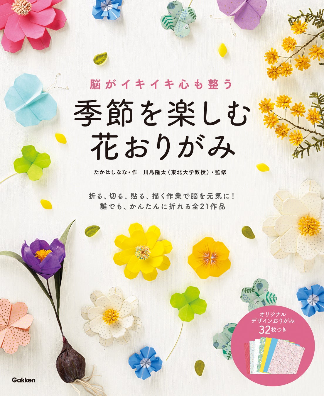 楽しく折って脳活性! 花モチーフの花おりがみ21作品の折り方とオリジナル柄おりがみ32枚『脳がイキイキ心も整う 季節を楽しむ花おりがみ』が発売!