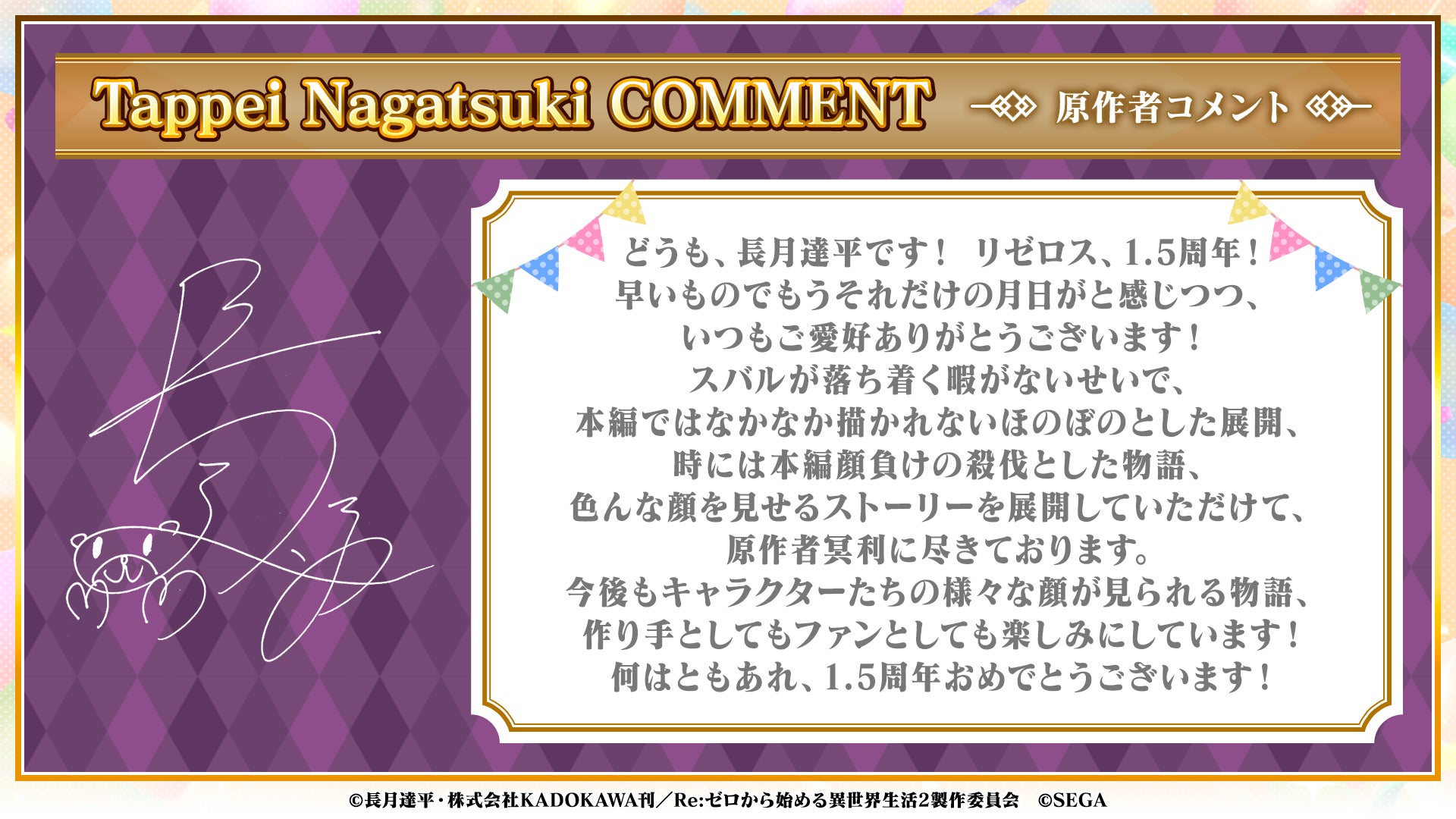 ■1.5周年を記念して、原作者・長月達平先生からのコメントを公開!