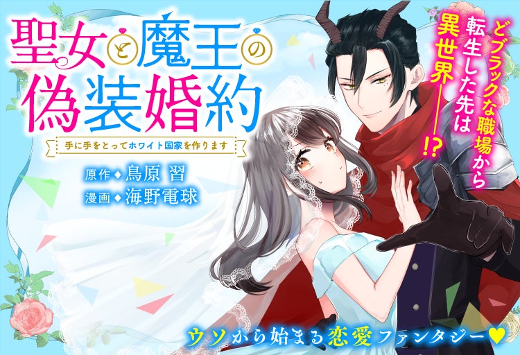- 『聖女と魔王の偽装婚約〜手に手をとってホワイト国家を作ります〜』(著:海野電球/原作:鳥原習)