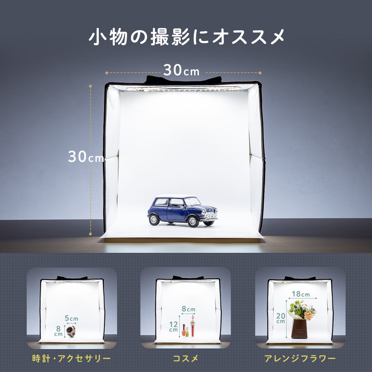 撮影ボックス 30cm ライト付 折りたたみ 背景6色付属 USB電源 調光可能 650ルーメン