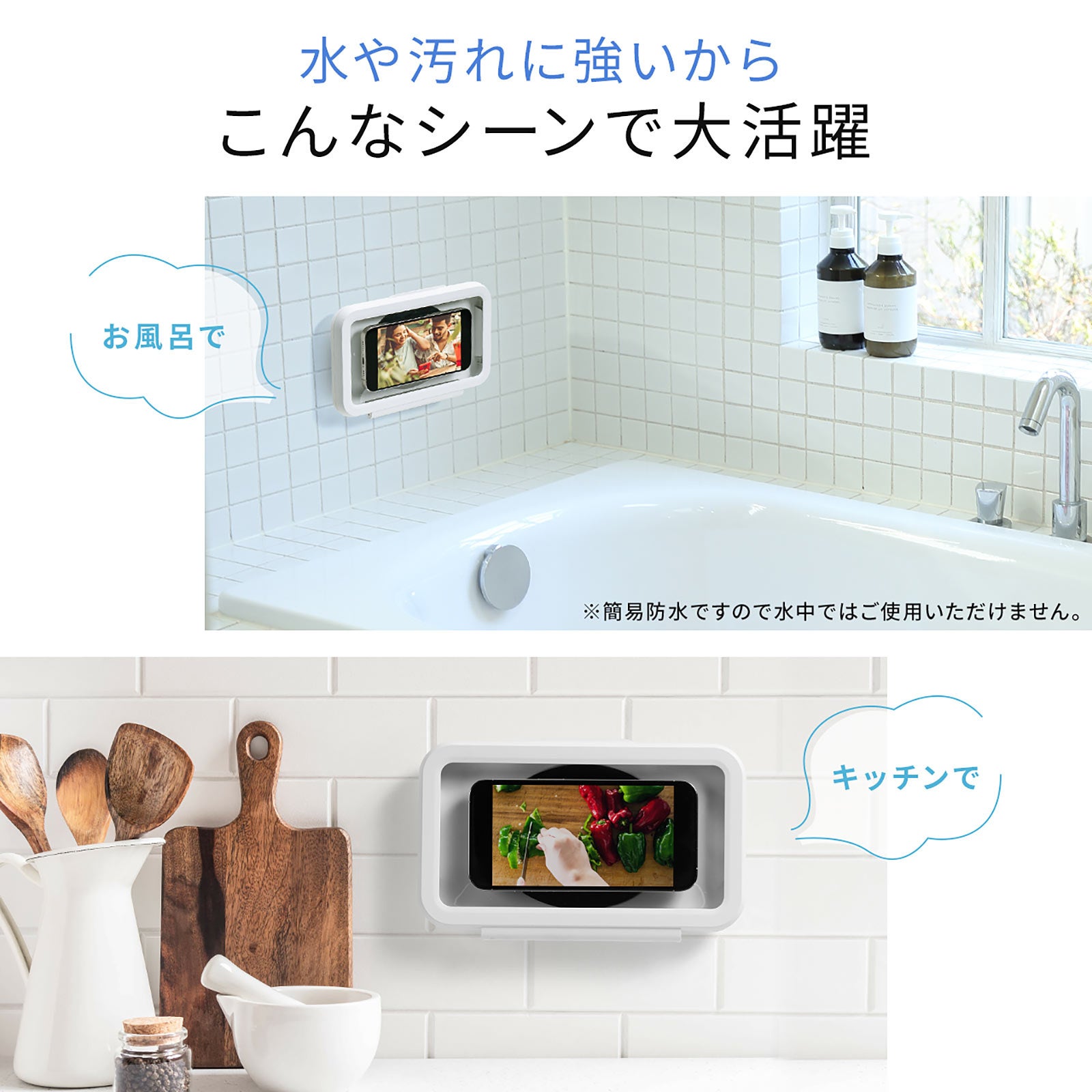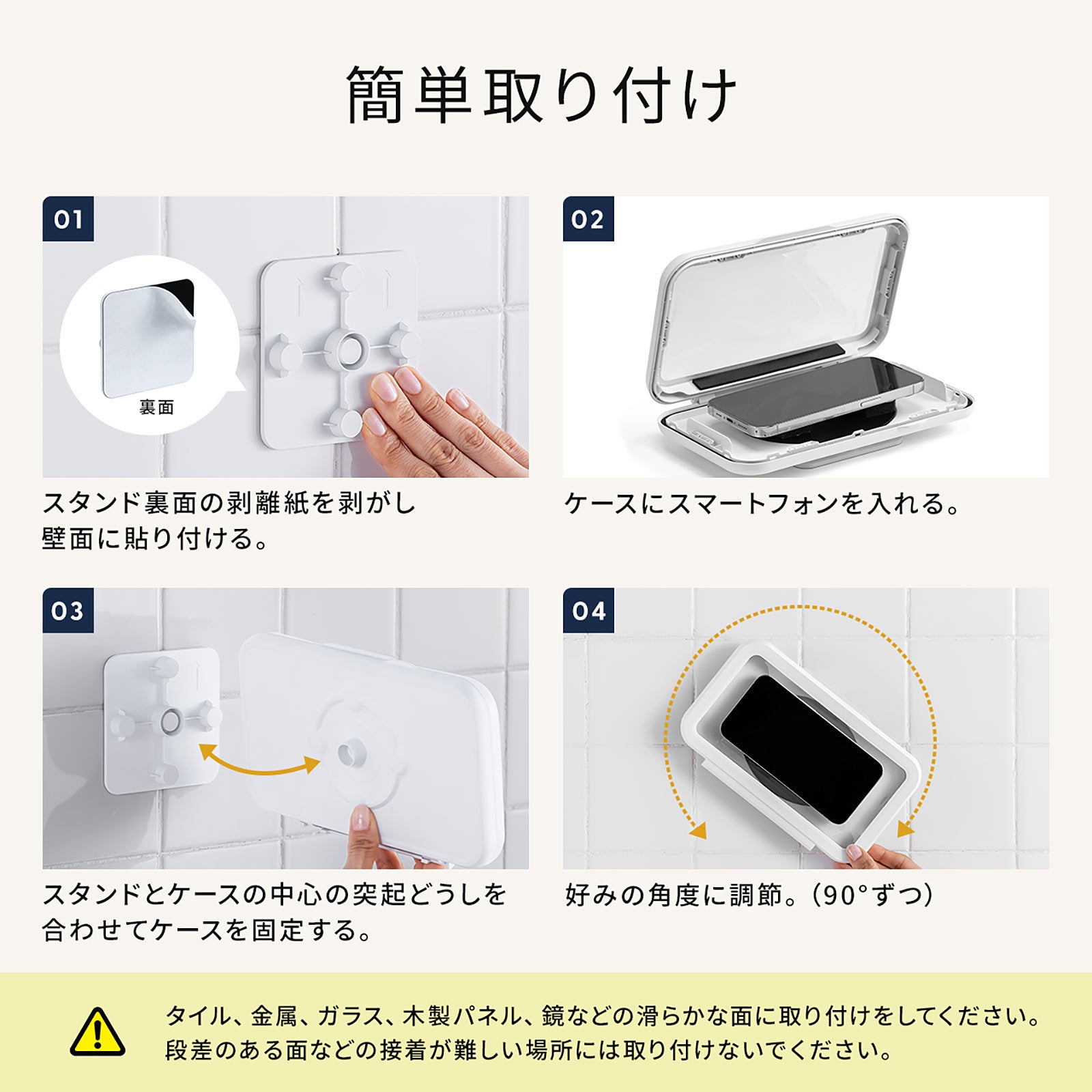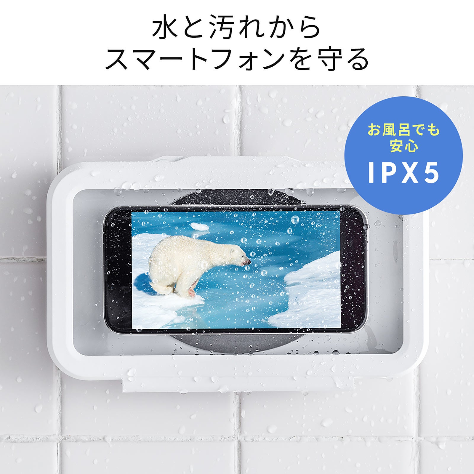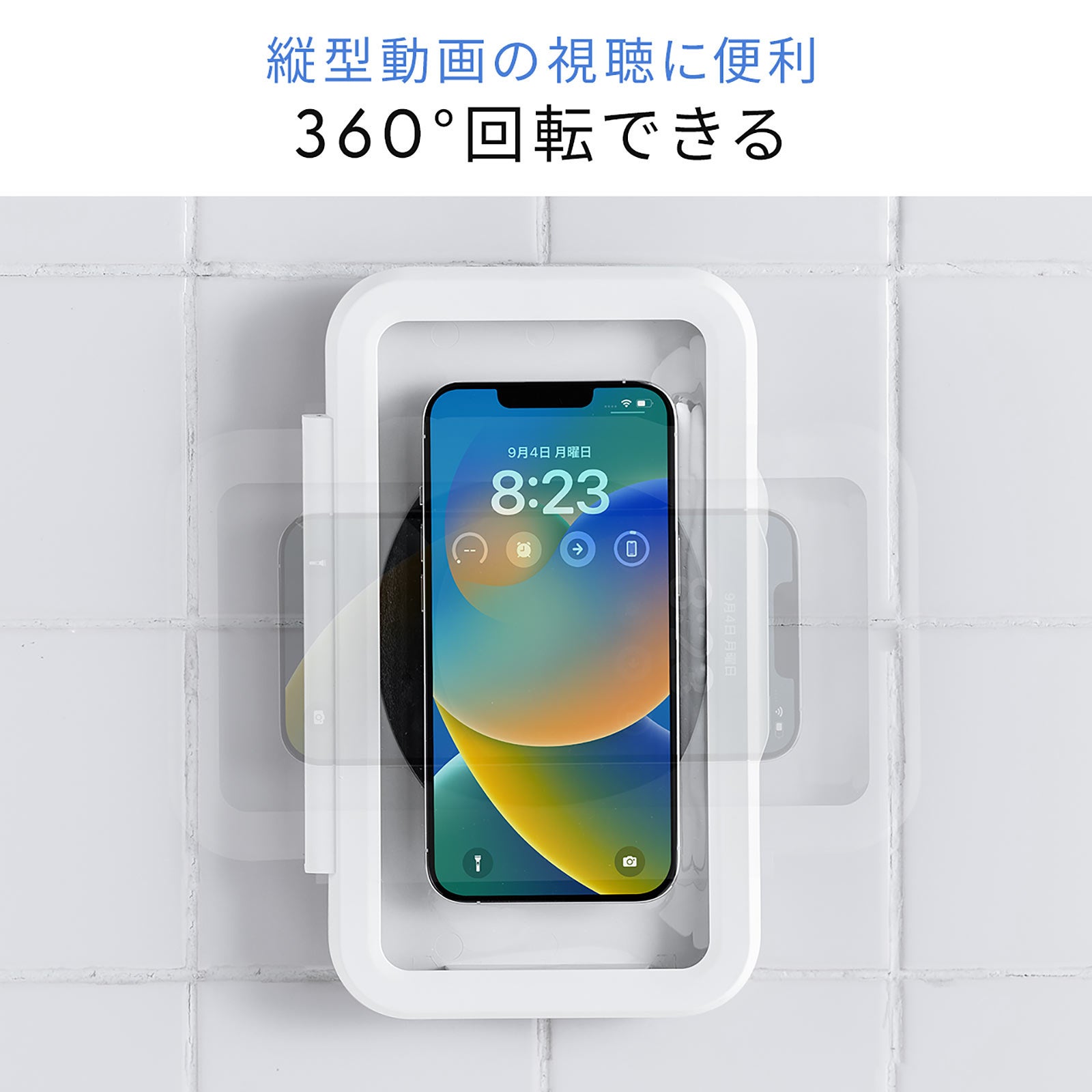 壁掛け 防水ハードケース スマホ用 6.8インチ対応 取付簡単 360度回転 着脱簡単 IPX5 スマホスタンド お風呂 キッチン 浴室 洗面所 iPhone15 14 13 SE Android