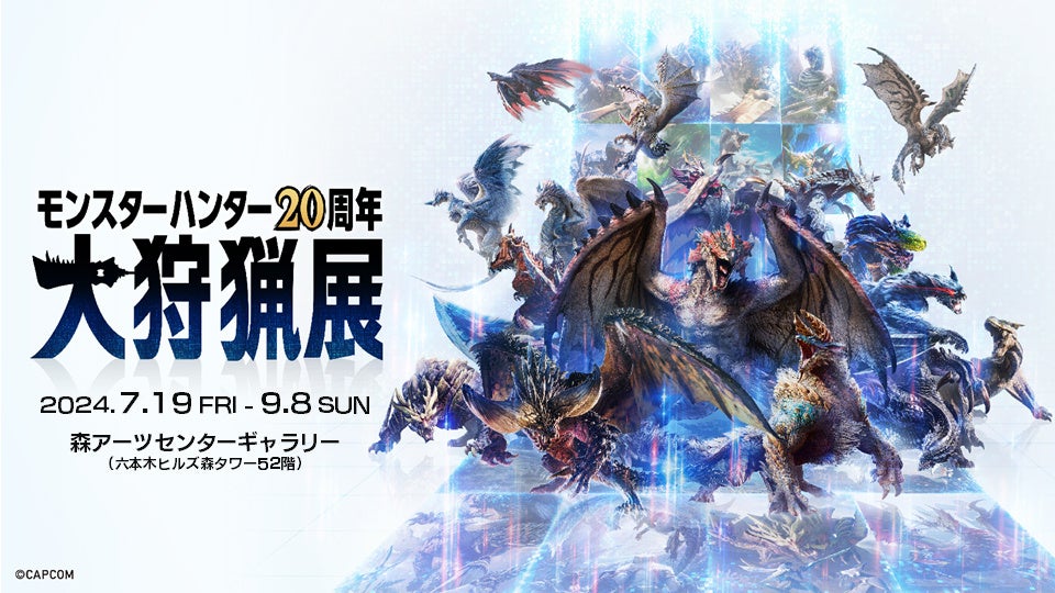 いよいよ7月19日(金)から開催される「モンスターハンター20周年-大狩猟展-」の最新情報や「第2回モンスター総選挙 BGM編」の続報、その他注目の20周年記念コラボアイテムを紹介予定。