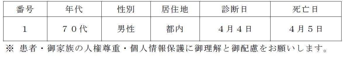 都内で新型コロナウイルスに感染した方が死亡されましたのでお知らせします。