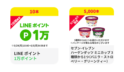 キャンペーンサイト内のデイリーミッションをクリアして手に入る「ガチャチケット」でガチャを回すと、LINEポイントや「LINE GAME」各タイトルのアイテムなどがその場で当たるガチャイベントを実施中です。本日より6月5日(月)までの期間、LINEポイント1万ポイント(毎日10本)が報酬ラインナップに登場します。