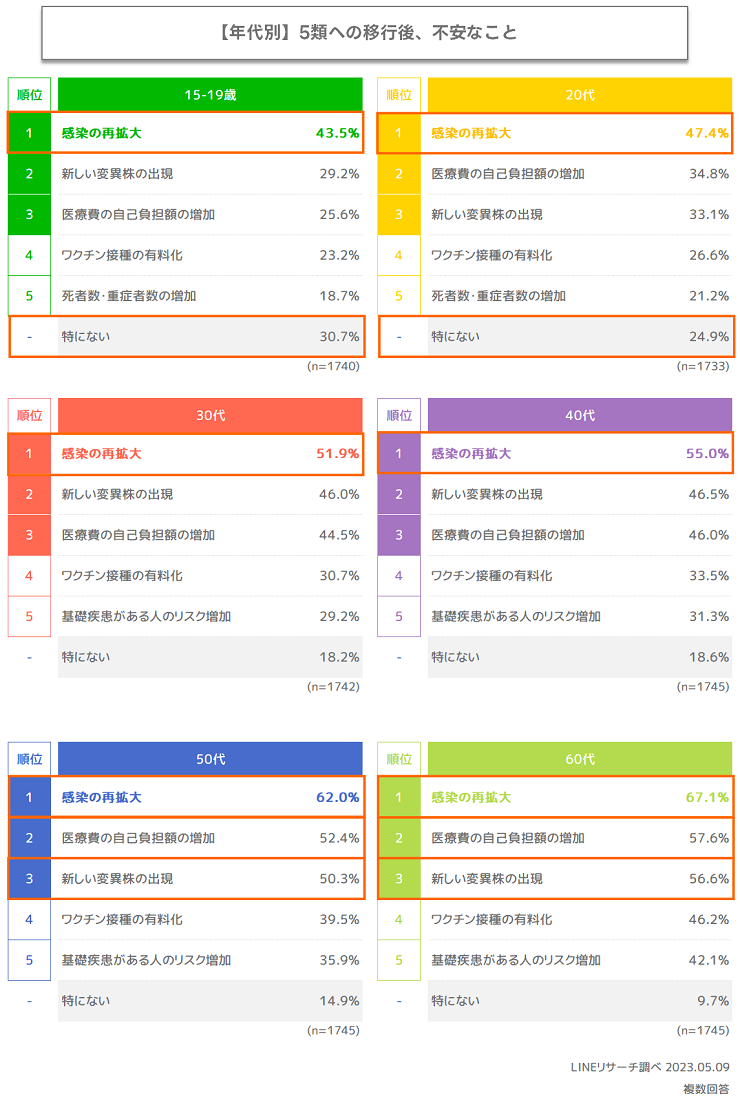 ■5類移行により不安に思うことは「感染の再拡大」がどの年代でも高い結果に