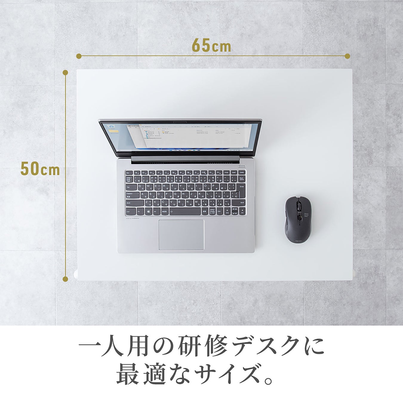 一人用の研修デスクに最適な幅65cm、奥行50cmのサイズです。