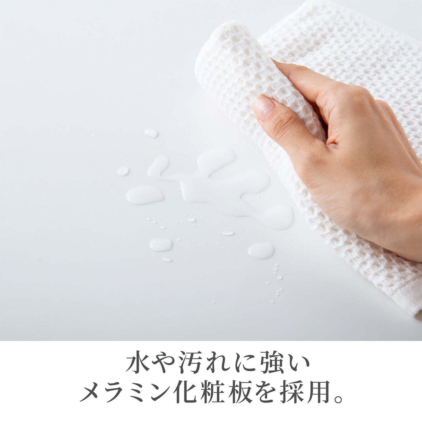 水や汚れに強いメラミン化粧板を採用しています。