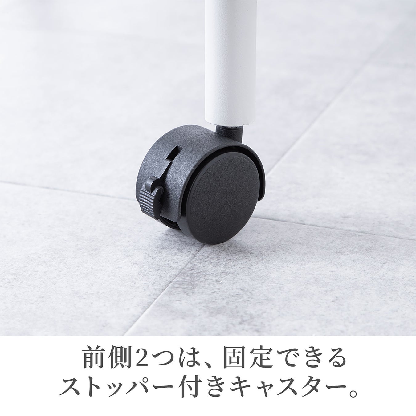 キャスターの前側は固定できるストッパー付きです。