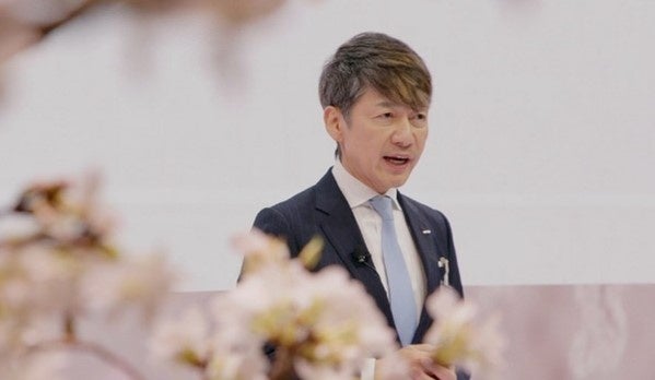 会場には新卒パートナーが集い、スタジオのモニターにCG アセット(空間演出)を合成することで、全社向けの配信映像ではバーチャル空間に満開の桜が咲き誇るアセットを映し出し、まるでその空間にリアルの人間が入り込んだようなXR 映像となりました。