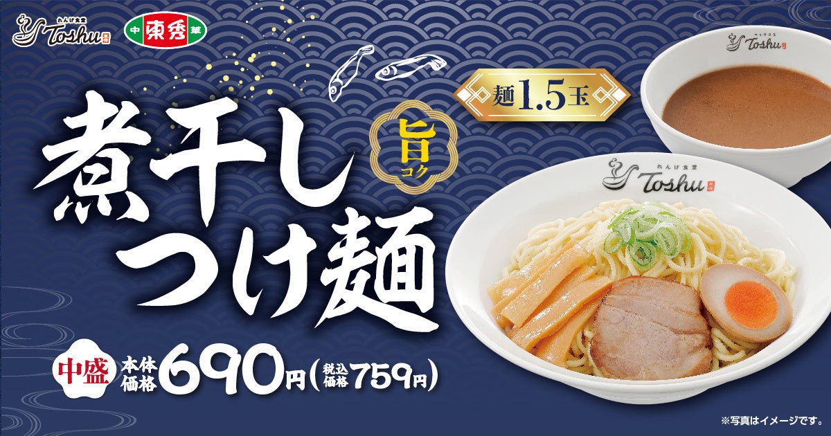 中華料理店「れんげ食堂Toshu」「中華東秀」を展開しているイオングループのオリジン東秀株式会社(本社:東京都調布市/代表:沢村 弘也)は、5月22日(水)より、「煮干しつけ麺」を期間限定で販売いたします。