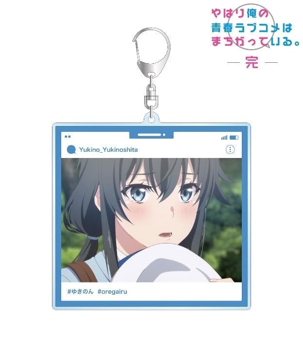 雪ノ下雪乃、由比ヶ浜結衣、一色いろはをSNS風のデザインでBIGなアクリルキーホルダーに仕上げました。