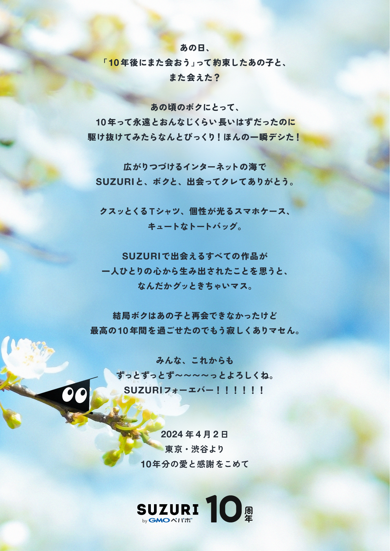 SUZURI byGMOペパボ 10周年記念ティザーサイト URL:https://suzuri.jp/lp/10th
