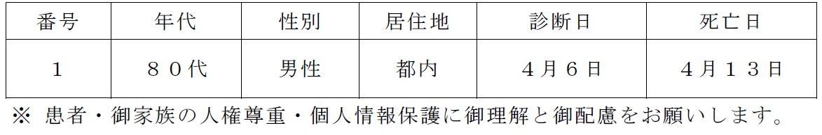 都内で新型コロナウイルスに感染した方が死亡されましたのでお知らせします。