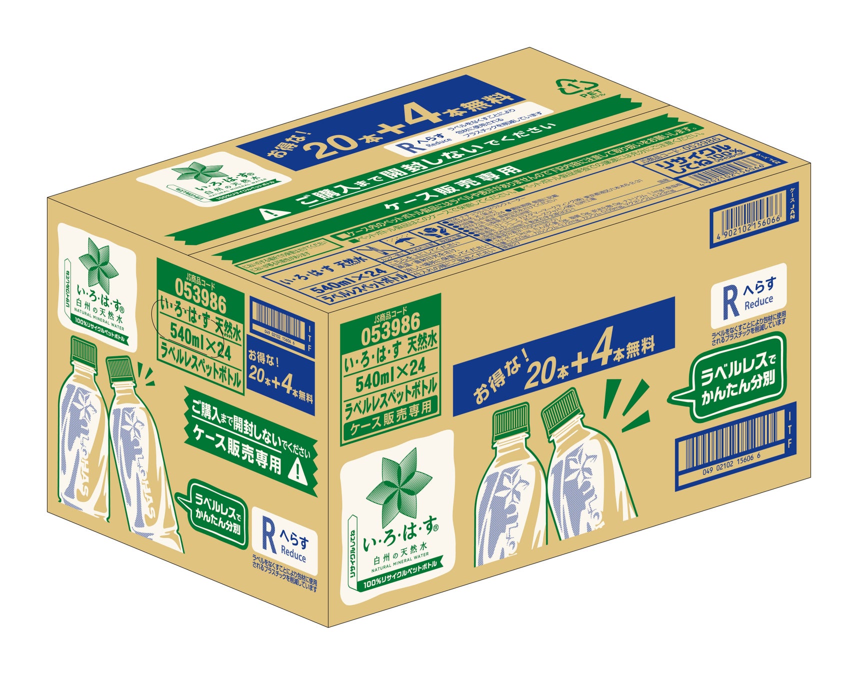 ④イオン限定「い・ろ・は・すラベルレス 540ml 20本+4本」※4
