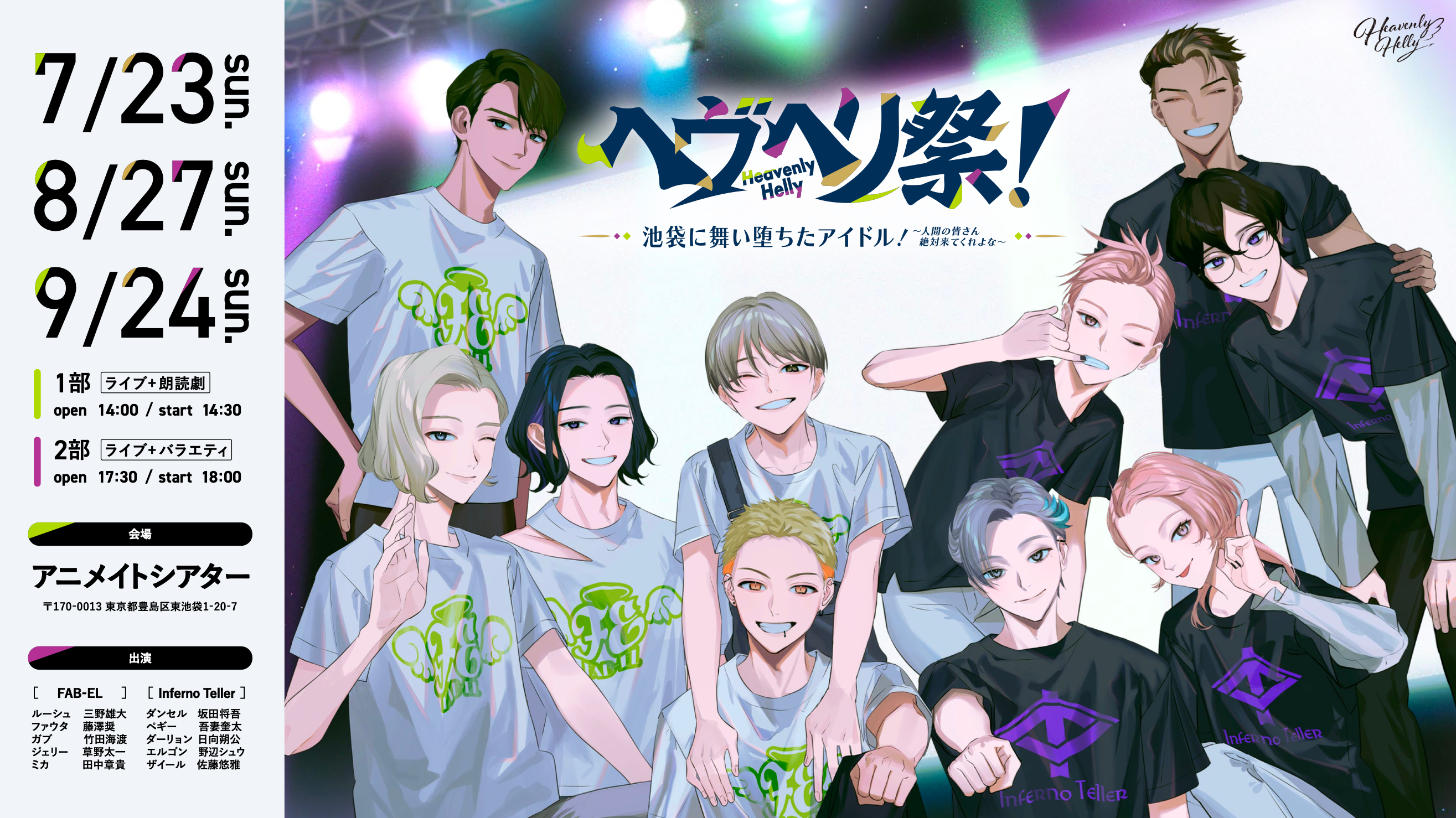 そんなヘヴヘリが、アニメイトシアターにて7月・8月・9月3ヶ月連続でライブ公演「ヘヴヘリ祭!」を開催いたします! 今回は「ヘヴヘリ祭!」関連情報をお届けします。