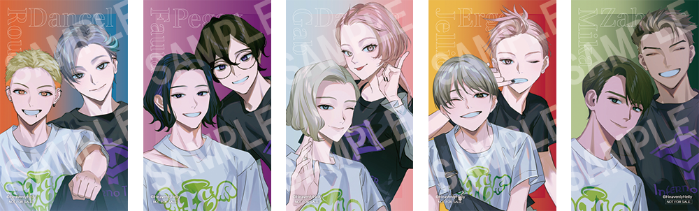 期間中『HeavenlyHelly』関連のキャラクターグッズをご購入・ご予約内金1,100円(税込)毎に、特典イラストカード(全5種)を1枚プレゼント!
