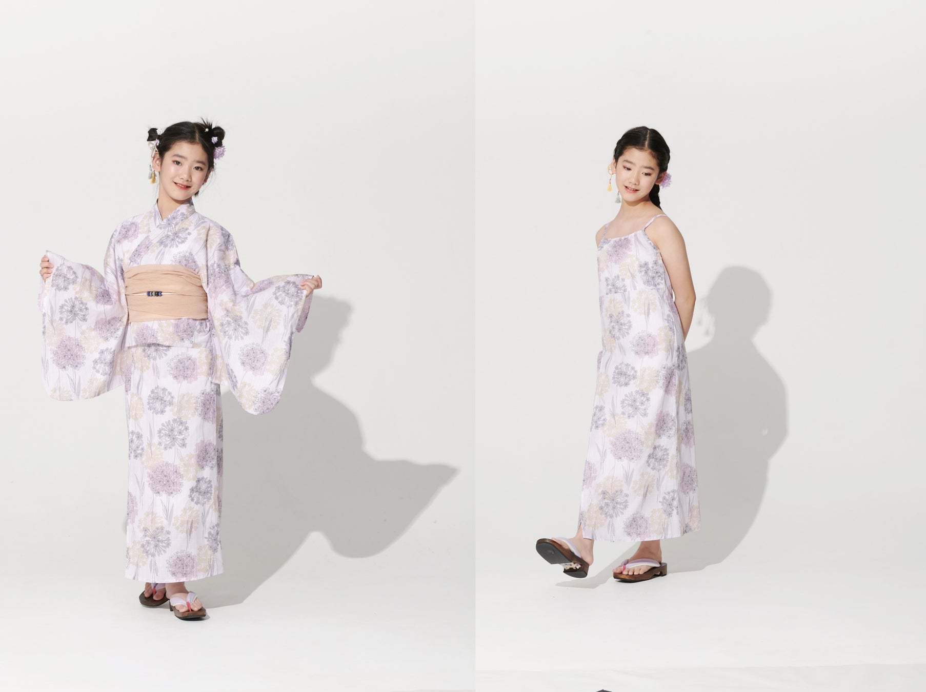 今年は、上衣を羽織ればワンピースから浴衣姿に簡単に変わる一着二役の「ワンピゆかた(レディス・キッズ)」が新登場します。柄やシルエットにこだわり、ゆかたとしてはもちろん、ワンピーススタイルでも普段使いしていただけるよう工夫しています。洋服のようにファッションとして、日常のなかでも、ゆかたが楽しめる商品です。また、昨年人気だったトレンドのくすみカラーの ゆかたと兵児帯(へこおび)がセットになった「KUSUMIゆかた(レディス・キッズ)」では、レディスで新たに「KUSUMI otonaゆかた」を展開します。麻混の生地のゆかたに、天然素材のもつマットな質感に合うような筆書き調の柄を採用し、濃色帯との組み合わせも展開します。