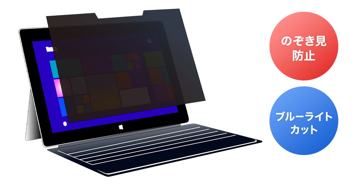 周囲の視線を気にするストレスが軽減できるので、外出先で使うことの多い方におすすめです。また、授業でSurfaceを使用している学校や学習塾、個人情報を多く持つ先生方にもおすすめです。