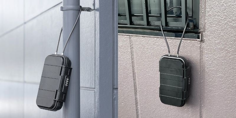 セキュリティボックス 貴重品ボックス セイフティボックス 鍵収納ボックス キーボックス 防塵 防水 IP67準拠 4桁ダイヤル錠 ワイヤー取り付け ワイヤー長55cm