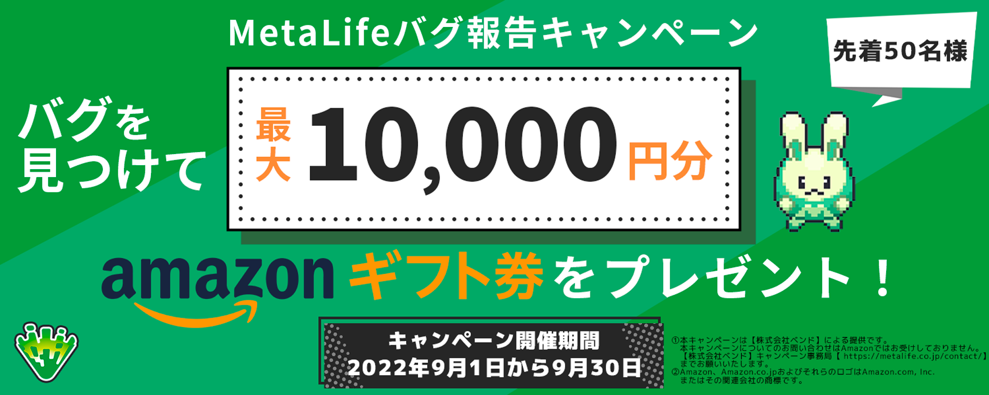MetaLifeでは、サービスの質の向上をより促進するためにバグ報告キャンペーンも開催しています。
