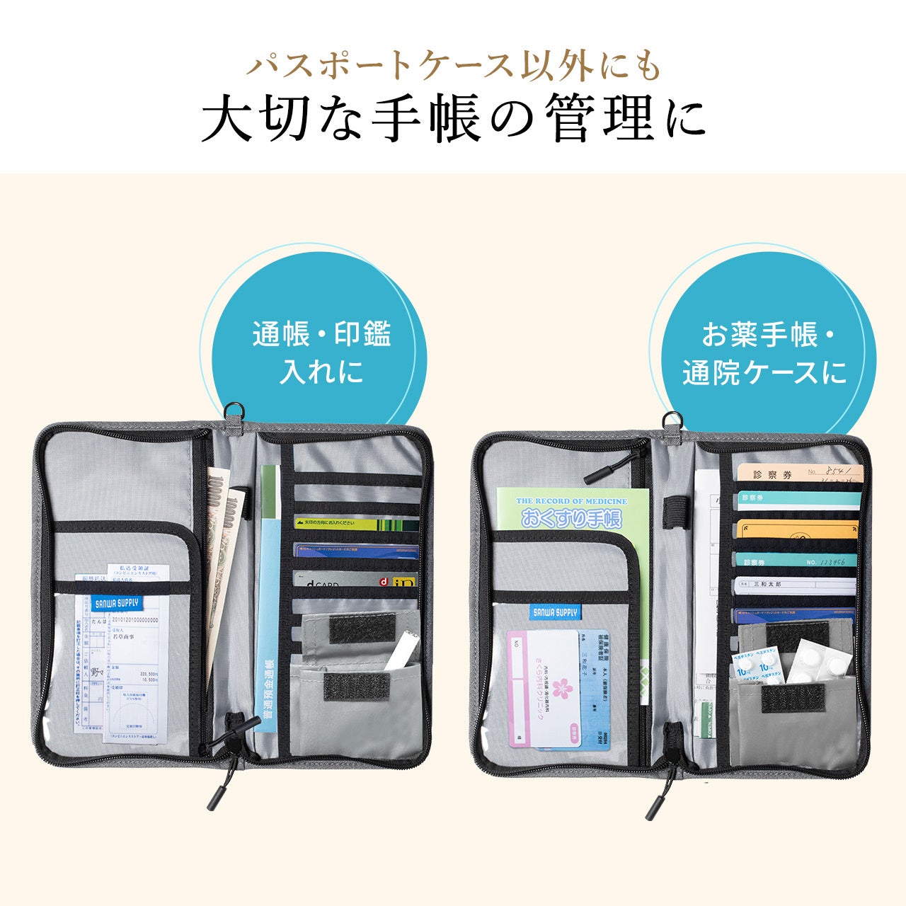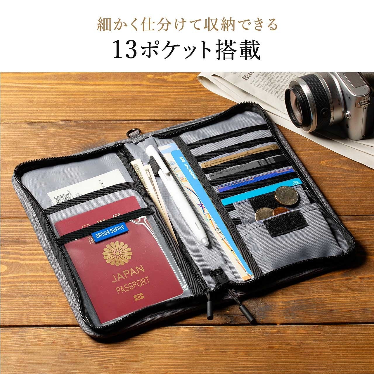 パスポートケース スキミング防止 トラベルオーガナイザー 13ポケット 航空券対応 Lサイズ グレー