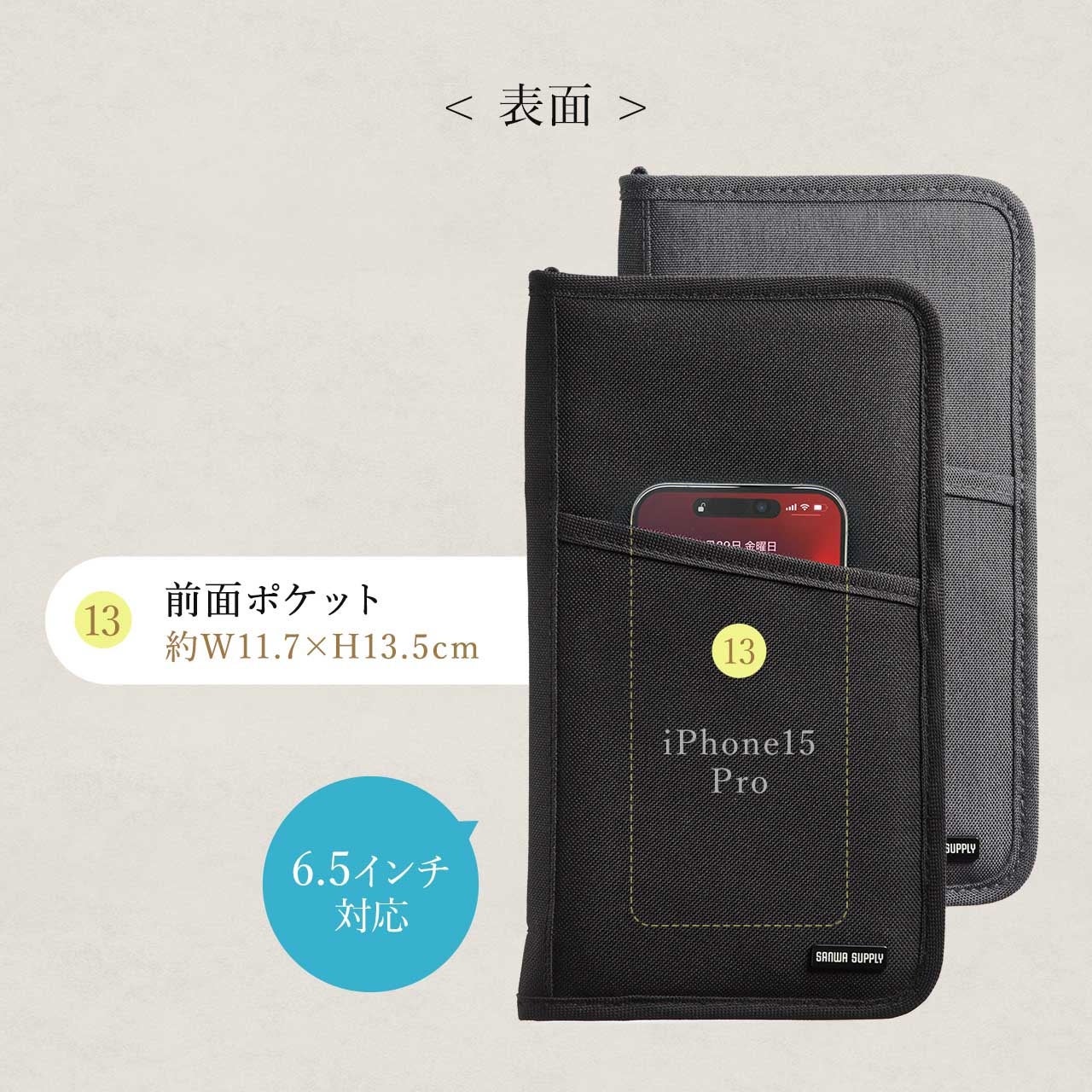 パスポートケース スキミング防止 トラベルオーガナイザー 13ポケット 航空券対応 Lサイズ ブラック