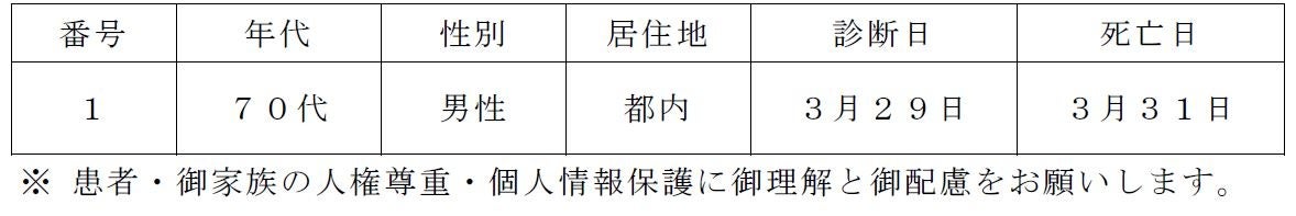 都内で新型コロナウイルスに感染した方が死亡されましたのでお知らせします。