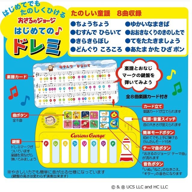 はじめてでも楽しく弾ける!好奇心いっぱいのジョージと一緒に音に触れよう♪『おさるのジョージ はじめてのドレミ』発売!