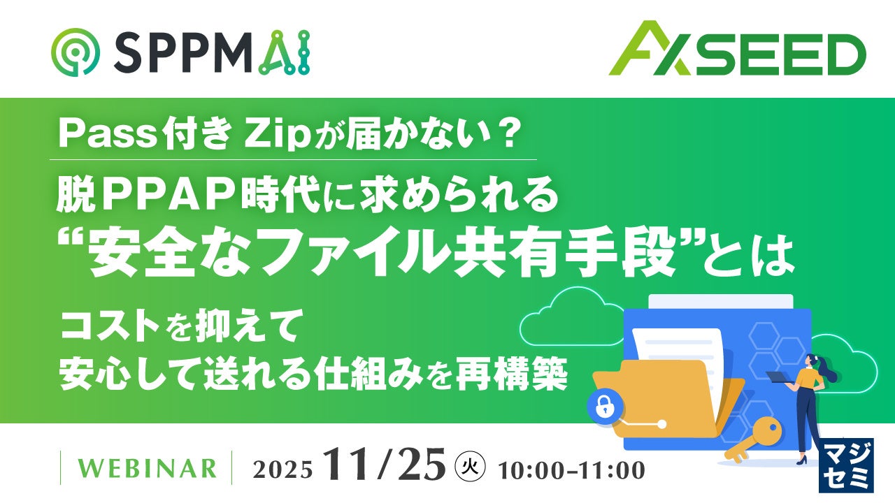 マジセミ株式会社は「Pass付きZipが届かない?脱PPAP時代に求められる“安全なファイル共有手段”とは」というテーマのウェビナーを開催します。