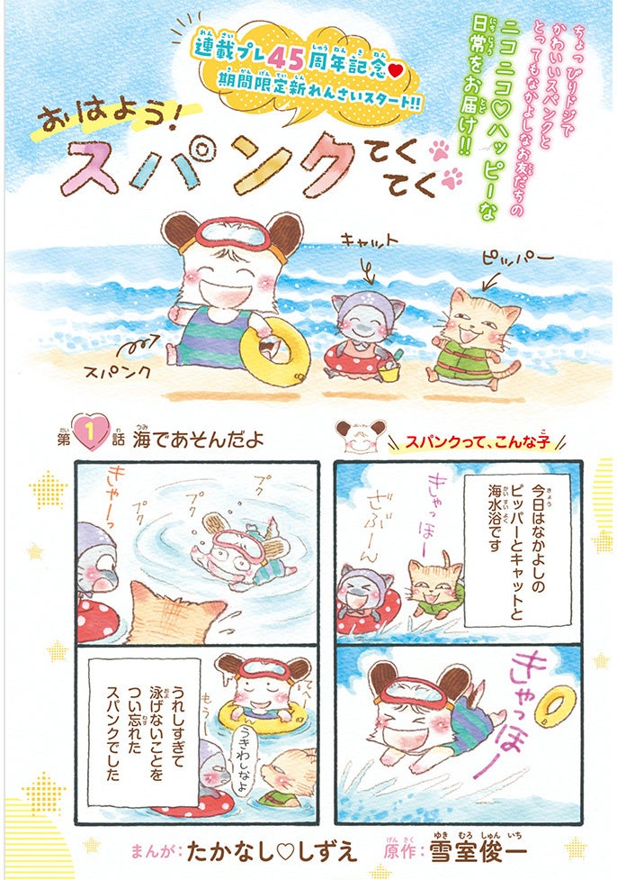 また、期間限定でスパンクが「なかよし」に帰ってきます!『おはよう!スパンク てくてく』(まんが:たかなし♡しずえ 原作:雪室俊一) が新連載&センターカラーで登場。ちょっぴりおせっかいでドジだけど、憎めない犬・スパンクとハッピーがいっぱいの日常をお楽しみに。