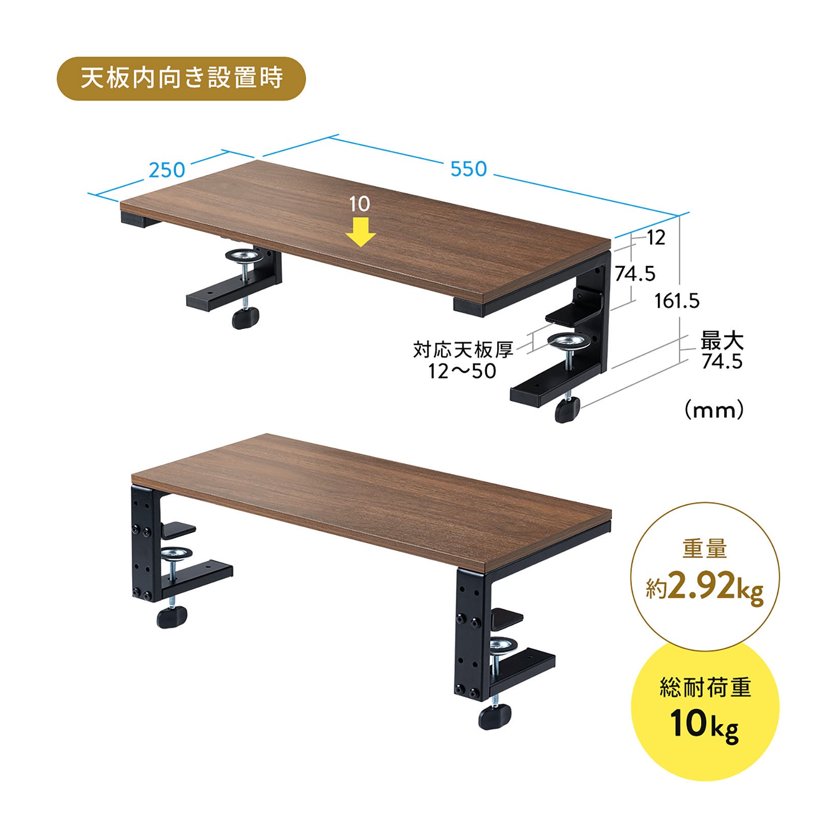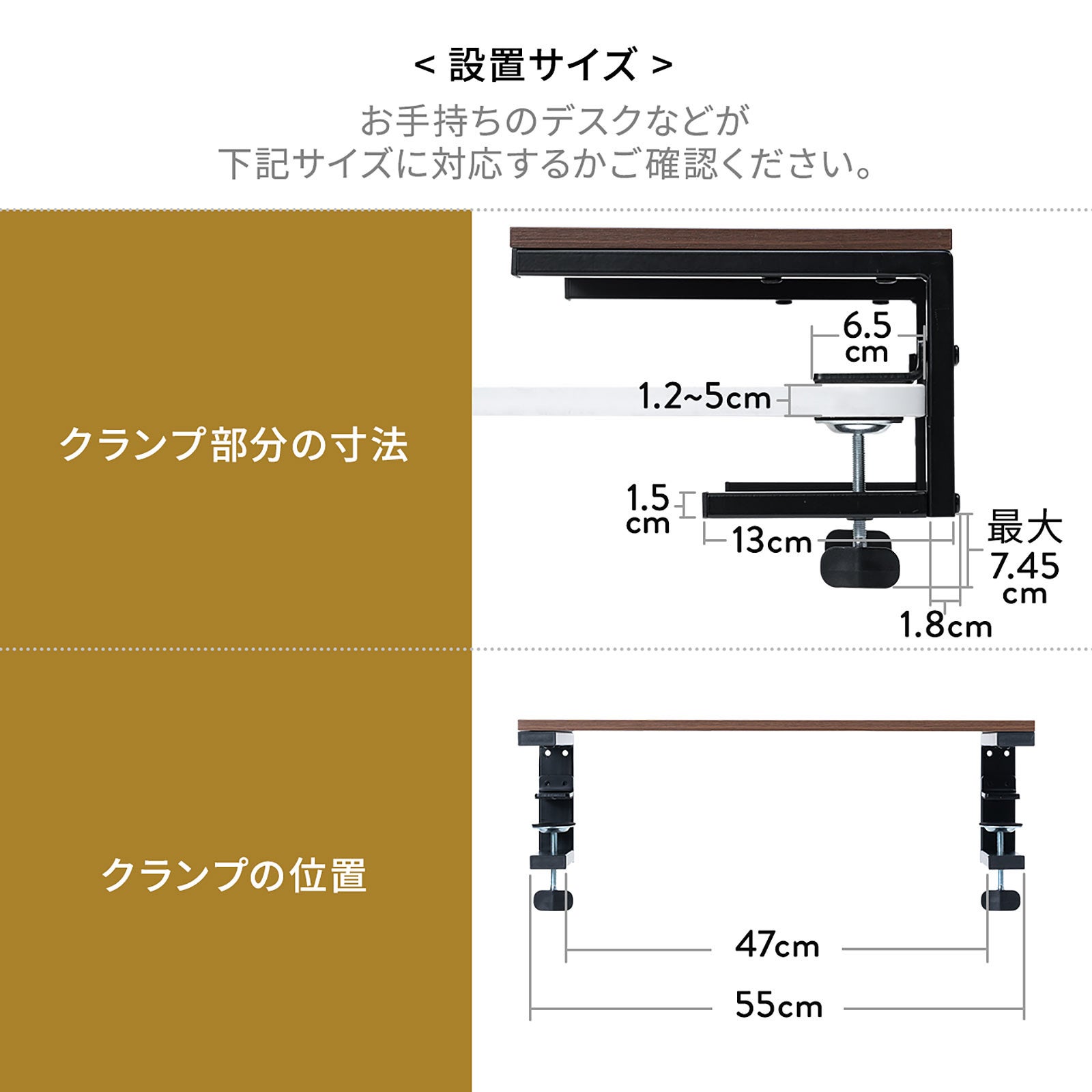 モニター台 机上台 幅55cm クランプ式 平置き 天板拡張 デスクエクステンダー 木目 ダークブラウン