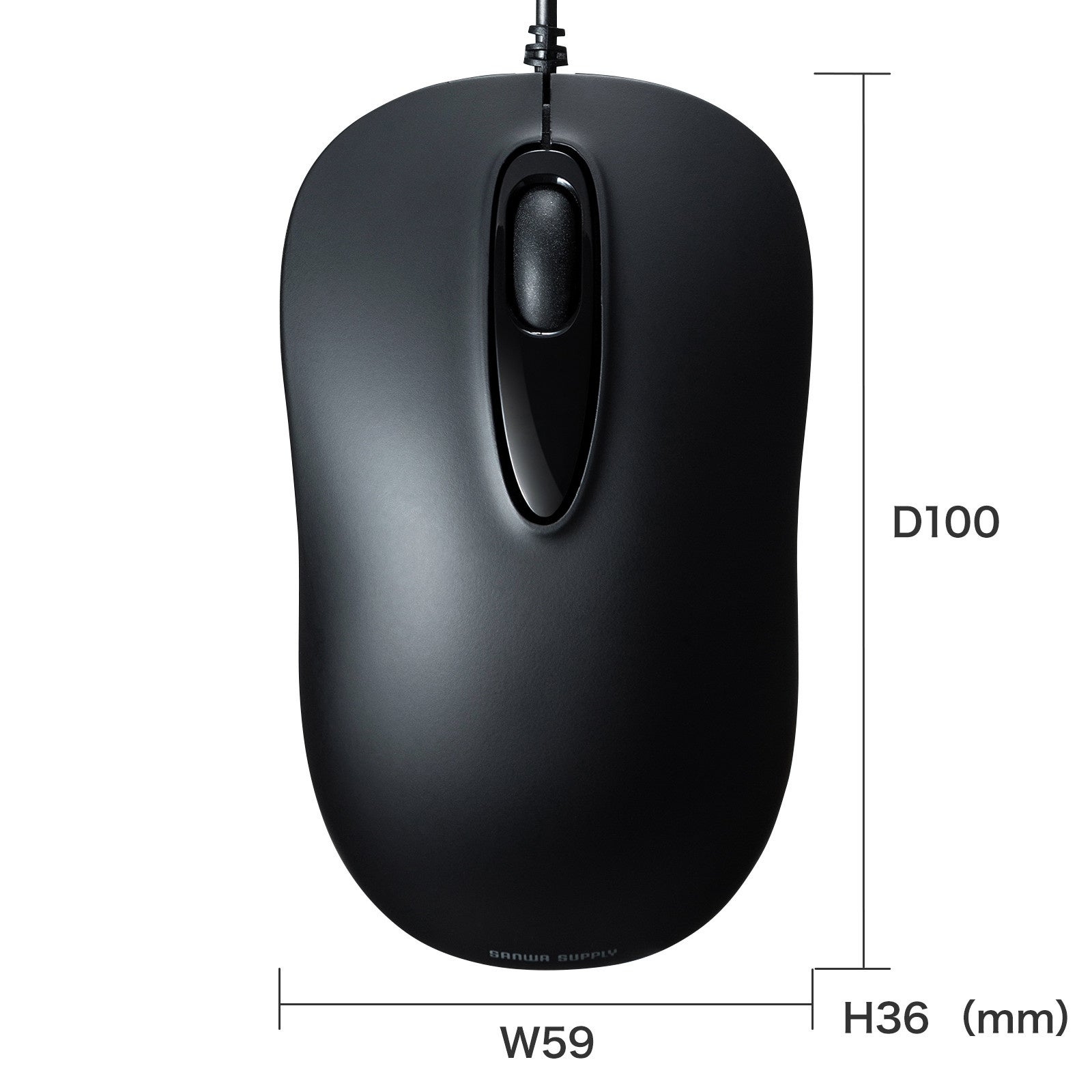 サイズは幅59×奥行き100×高さ36mmで、ケーブル長は約1.4mです。左右対称型なので、右手でも左手でも使用できます。使いやすく、シンプルなデザインなので、学校、オフィス、ご自宅などの様々な場所でおすすめです。