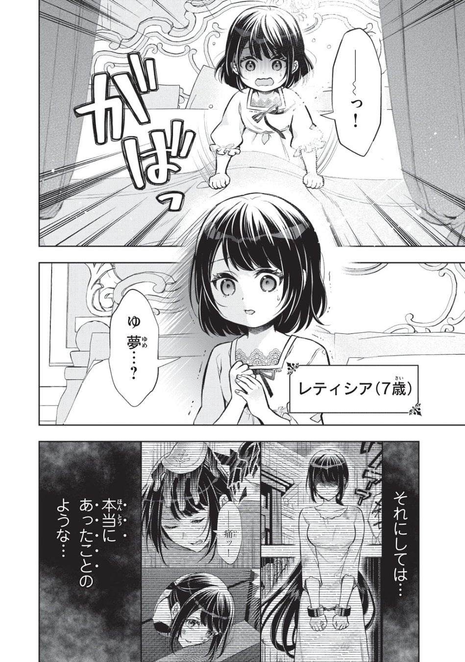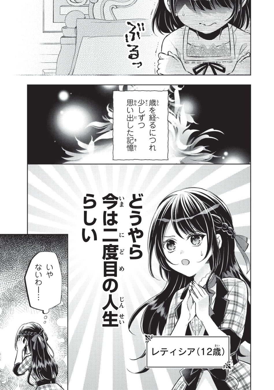 断頭台で処刑された主人公レティシアが時を遡り、二度目の人生を始める王道シーンから物語は始まります。