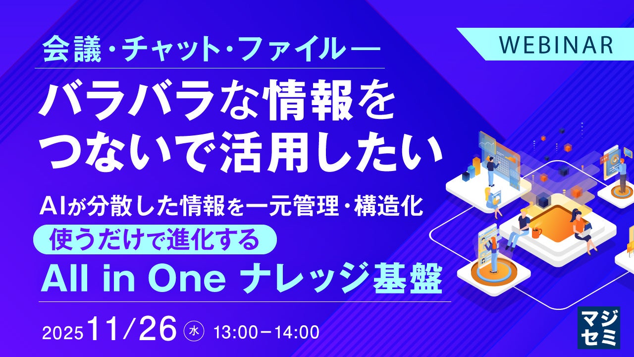 マジセミ株式会社は「会議・チャット・ファイル――バラバラな情報をつないで活用したい」というテーマのウェビナーを開催します。