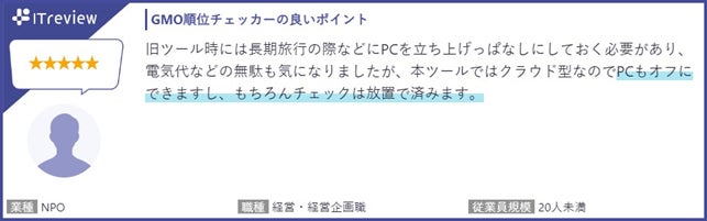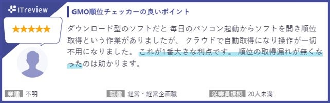【「ITreview」に寄せられた「GMO順位チェッカー」利用者の声(一部抜粋)】