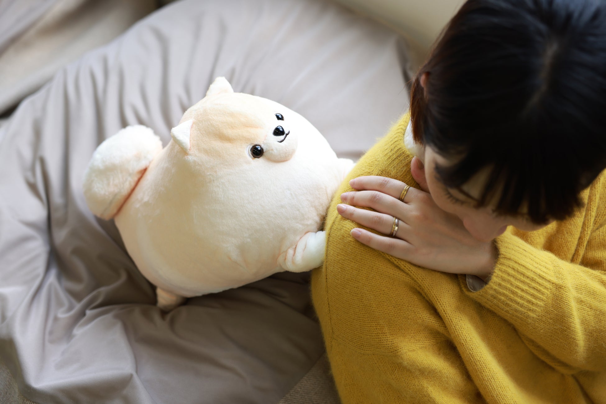 お膝の上につい置きたくなるたまらないボリューム感!