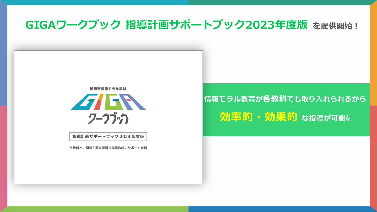 学校で効率的・効果的に情報モラル教育を進めるための「GIGAワークブック 指導計画サポートブック2023年度版」を提供開始