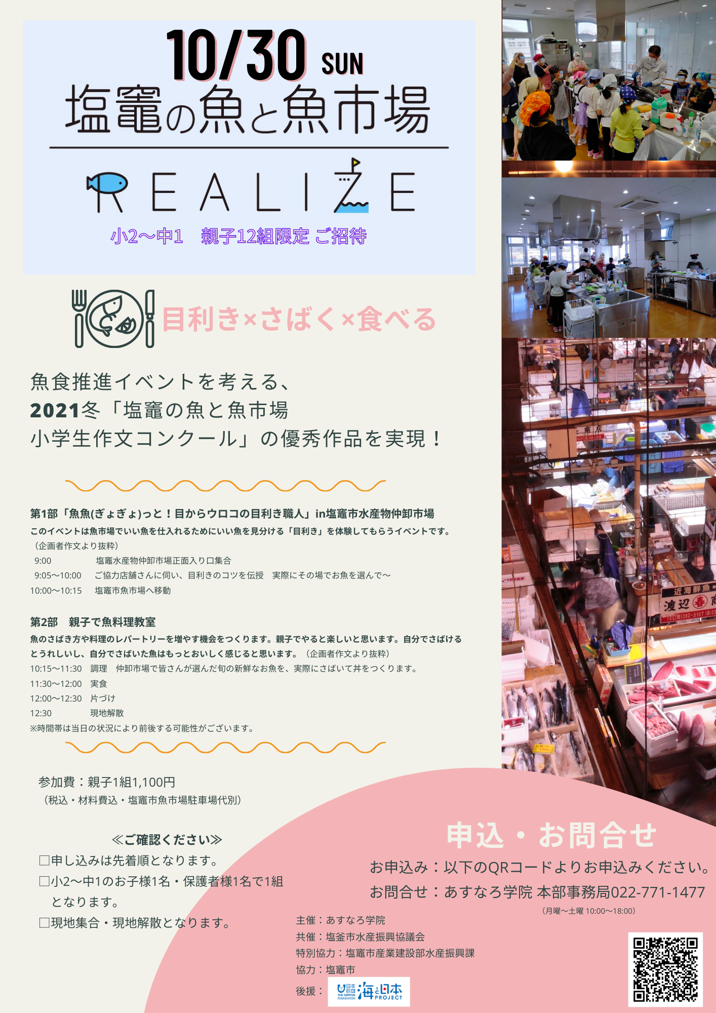 ≪宮城県の総合学習塾あすなろ学院≫ 10/30 小学生による魚食推進イベントを実現 ~塩竈の魚と魚市場 REALIZE~