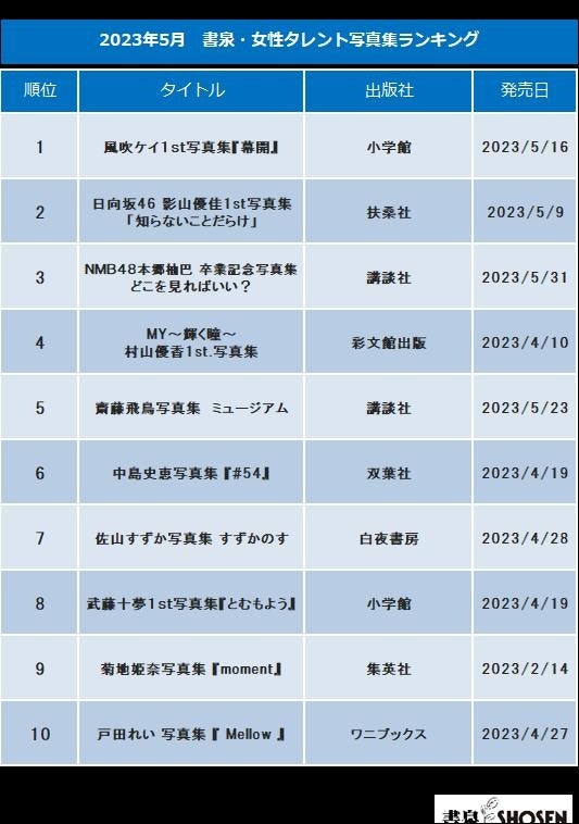 <2023年5月 書泉・女性タレント写真集売上ランキング>